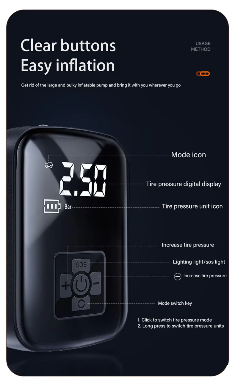 – Multifuncional – Infla gomas de autos, bicicletas, motoras, balones y más